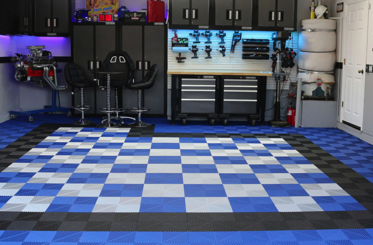 The Swisstrax modular floor system simply clicks into place. There’s no need to prep the garage or move everything out completely.