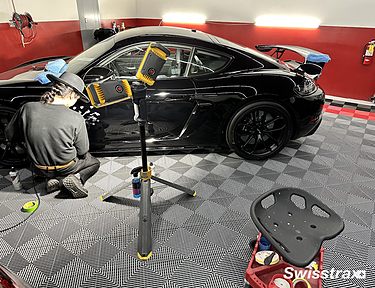 Design and customize your detail shop flooring with Swisstrax. This eye-catching modular flooring systems can create a branded experience for your customers and create a professional and polished look for your detail shop business. Explore the 12-Series and Pro lines for Swisstrax and discover what will work best for your car detail shop floor.